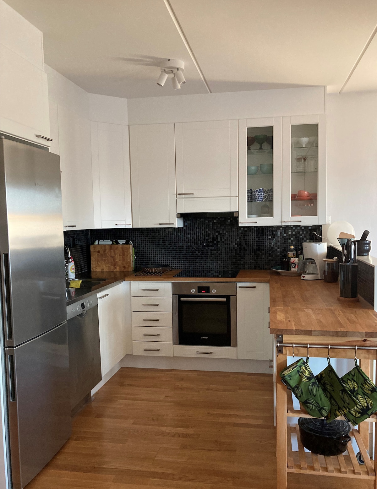 Apartamento com 50 metros quadrados totalmente equipado com mobiliário novo e fresco. Área calma com 1,5 km da cidade de Mariehamn e mais ou menos a mesma distância de um grande supermercado e centro comercial. Consegue chegar à praia em alguns minutos de carro ou 15 a 20 minutos a pé. Com uma grande cama king size e um sofá cama pode acomodar confortavelmente 4 pessoas. Pode ser solicitada uma cama extra, se necessário. A lavandaria e a sauna estão disponíveis dentro da casa e são partilhadas com outros inquilinos.
