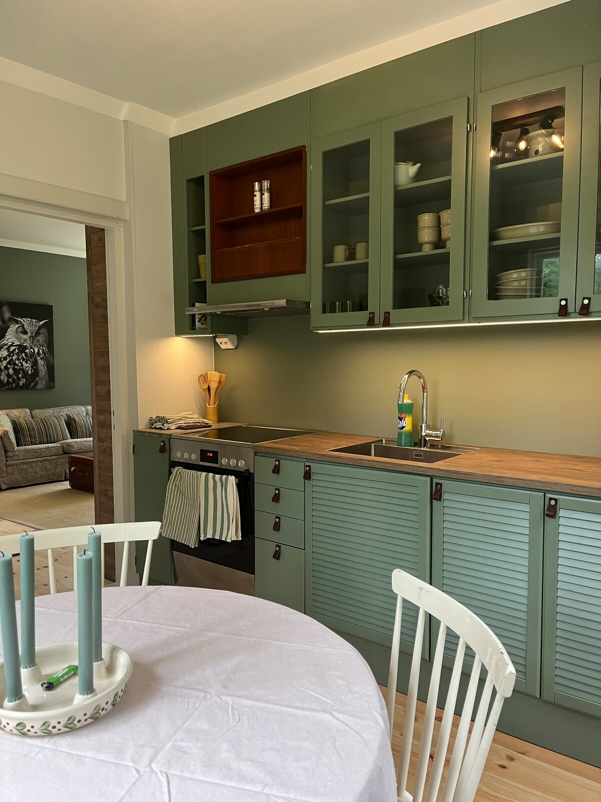 Nesta pequena casa recentemente renovada, vive em meio à natureza, apenas com veados e vacas cercadas como vizinhos. Os arredores são muito bonitos com vista para a floresta e o jardim de carvalho e a apenas cerca de cem metros de distância, tem uma praia "própria" para nadar. O ambiente tranquilo sem Wi-Fi e TV inspira paz e harmonia em sintonia com a natureza. A casa é especial - tetos pequenos, mas altos (3,40 cm), o que dá a sensação de espaço e herdade. As grandes janelas da natureza tornam-se como obras de arte.