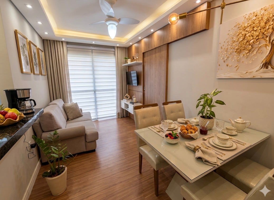Sofisticação, conforto e ótima localização definem este apartamento de alto padrão, clean e extremamente charmoso, O espaço foi planejado para oferecer uma experiência premium. Os quartos são equipados com ar-condicionado, TV e ventilador, proporcionando conforto e privacidade. Ambientes bem iluminados e decorados com elegância. Para sua comodidade, o apartamento conta com vaga de garagem, além de acesso ao condomínio, que inclui piscina, academia equipada, quadra esportiva e salão de festas.