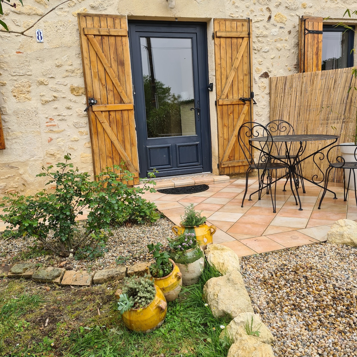 The guest house "Le figuier du clos d'Emilion" adjoins our house, which has been completely renovated and tastefully furnished to offer all modern comforts. They have a fully equipped kitchen and a shared garden with barbecue, plancha and fryer. The fruit trees offer you sunny or shady places and we have installed sunbeds for your comfort. "Le clos d'Emilion" is located 5 minutes from the village of Saint Emilion and a few steps from the Dordogne.