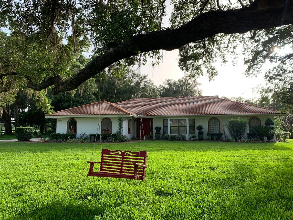Bem-vindo ao nosso encantador retiro agrícola, perfeito para uma escapadela relaxante. Situada numa pitoresca estrada de terra, a nossa propriedade oferece uma verdadeira escapadela. 2 acres totalmente vedados da quinta para a sua privacidade, é ideal para hóspedes com cães e oferece espaço para fogueiras à noite. A 4 milhas do WEC, a 2 milhas da FAST e perto de Florida Springs. Desfrute da beleza dos nossos abundantes carvalhos, vida selvagem e animais de quinta amigáveis. Visitas à quinta disponíveis. Experimente a tranquilidade e o charme rústico da vida na quinta com comodidades modernas nas proximidades.