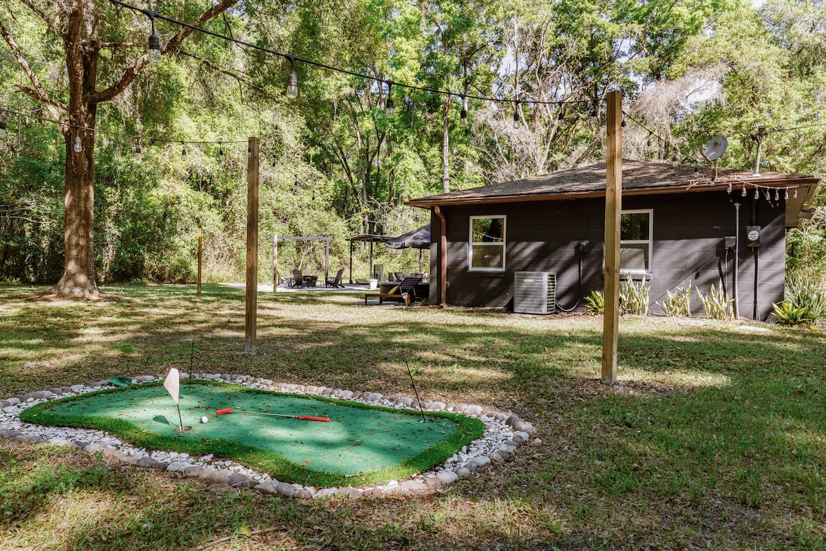 Surrounded by trees and nature, this newly designed sweet tiny home for 2 offers a stylish, tranquil getaway where you can slow down for a few days with your favorite human. Disconnect and relax on the patio with a good book, spend the day near by at Rainbow Springs, go diving at Devil's den or enjoy a hike in Goethe State Park. You can also roast marshmallows over the fire, sip wine and grill. At night, just settle into our Adirondack chairs for some stargazing, and wake up happily refreshed.