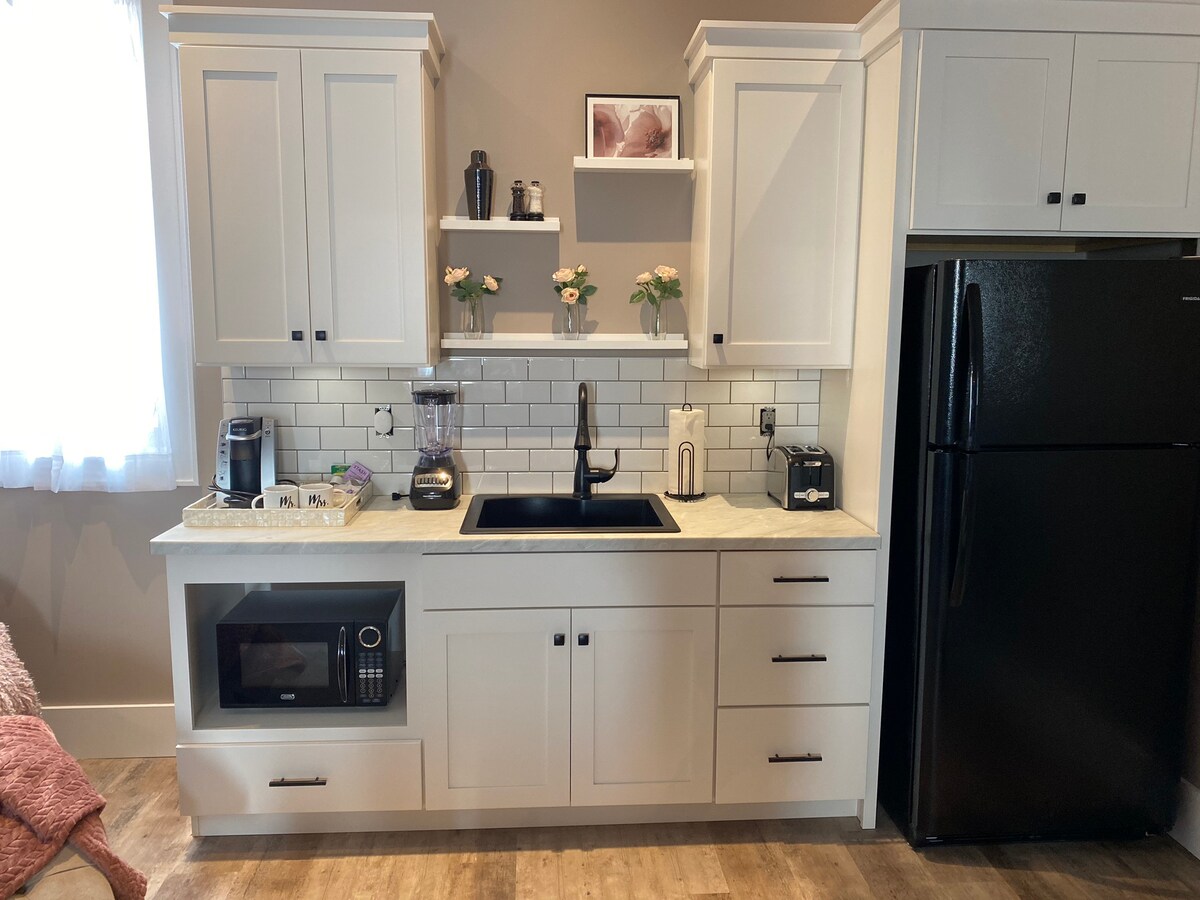 Welcome to the Charlotte Suite. This newly renovated historic lofted condo is located in downtown Utica, IL (Starved Rock and Matthiessen State Parks). It will accommodate up to 4 guests, but is ideal for a romantic getaway or a girls trip with a king sized bed and queen size sofa sleeper. The lower level of The Bickerman is home to Bruce & Ollie’s Coffee, Ice Cream and Deli. It is a place for everyone to enjoy! The building has been restored while maintaining it’s rich history!