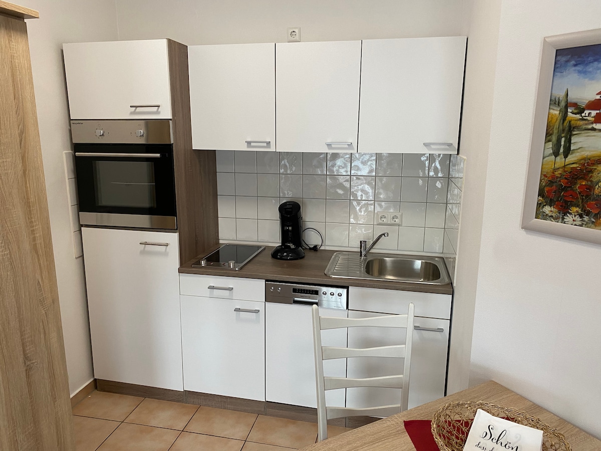 Bem-vindo ao nosso acolhedor apartamento. O apartamento está localizado em uma rua tranquila sem saída com vagas de estacionamento suficientes no belo bairro de Hagen-Emst. Uma entrada separada com um terraço coberto virado para o sul leva à sala de estar/quarto, cozinha totalmente equipada e banheiro moderno com chuveiro. Arredores: - A uma curta distância a pé do Stadthalle (10 min), centro da cidade de Hagen (15 min). Universidade de Ciências Aplicadas Südwestf., Fern-Uni (10 min de carro). Paradas de ônibus no local.
