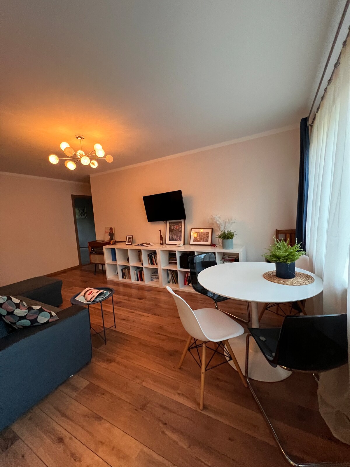 Aconchegante, apartamento luminoso de 50 m2 em um bairro tranquilo, Jardim Botânico a uma curta distância Muito fácil chegar ao centro de transporte público. O transporte vem a cada 5 minutos 10-15 minutos de bonde/ônibus para o centro histórico. 10 minutos de carro O recém-renovado apartamento de design escandinavo no 2º andar com pisos de madeira tem um quarto separado, uma espaçosa sala de estar com uma área de cozinha comum. Por favor, note que os pertences do proprietário estão no apartamento!