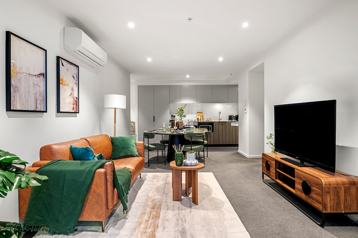 Estadia moderna no Melbourne Quarter | Localização privilegiada Fique no coração do Melbourne Quarter, a poucos passos da estação Southern Cross e dentro da zona de bonde gratuito para facilitar o acesso à cidade. 🚆 Transporte: Caminhe até trens, SkyBus e bondes gratuitos 🍽 Jantar: Os melhores restaurantes, cafés e supermercados nas proximidades 🏀 Entretenimento: Marvel Stadium, Crown Casino e museus a poucos minutos 🛍 Compras: Spencer Outlet e Bourke St Mall 🌿 Relaxamento: caminhadas pelo rio Yarra e parques próximos Perfeito para negócios e lazer. Reserve agora!