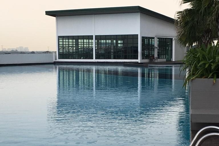 Esta é uma unidade espaçosa de 2 quartos perfeitamente adequada para hóspedes até 5 pessoas com um total de 1 cama king size, 1 cama queen size, 1 cama de solteiro Piso alto com vista alta. 1. Quadra de basquete 1. Academia 2. Salão de Funções 3. Lounge 4. Biblioteca 5. Loja de Manicure 6. Mini Teatro 7. Área de churrasco 8. Piscina 9. Sauna 10. Jacuzzi 11. Sala de jogos (mesa de bilhar, sala de PS, dardos e muito mais) 12. Lavanderia 13. Mini Mercado - Sky Garden Os hóspedes não podem fumar no quarto, por favor, fume na varanda, se necessário