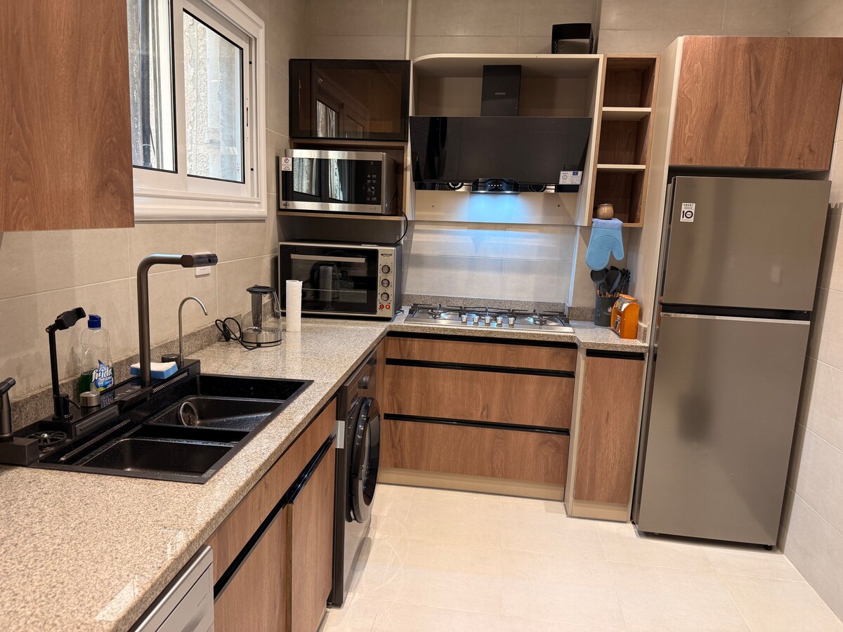 Desfrute de uma estadia luxuosa num apartamento de dois quartos com acabamento de hotel, num dos melhores locais de Nasr City, mesmo ao lado do City Stars Mall. O apartamento está mobilado com mobiliário elegante e moderno e inclui: Cozinha totalmente equipada com tudo o que precisa (frigorífico, micro-ondas, chaleira, fritadeira). Ferro e tábua de engomar para tornar a sua estadia confortável e completa. Um salão espaçoso e iluminado para descansar e relaxar. Internet de alta velocidade e ar condicionado central A localização é muito especial, a poucos passos de restaurantes, cafés, centros comerciais e fácil acesso ao aeroporto Perfeito para famílias ou pessoas de negócios que procuram conforto e luxo