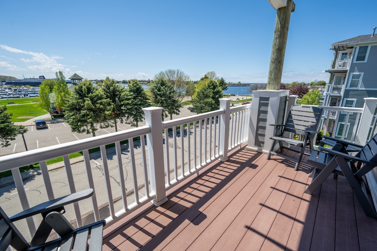 "Lakeside Haven" é um apartamento tranquilo, espaçoso e generosamente mobiliado de 3 camas e 2 banheiros. Desfrute de duas varandas panorâmicas com vista para a Marina e o Porto de Ludington. Nossa comunidade tem uma linda piscina aquecida e banheira de hidromassagem. Do outro lado da rua há passarelas ao longo do belo Lago Michigan. Convenientemente localizados, estamos a uma curta distância a pé da praia da cidade, do parque Waterfront, do parque Rotary, do Museu Marítimo, do Museu das Crianças, das compras no centro da cidade, dos restaurantes e a uma curta distância de carro do Parque Estadual de Ludington.