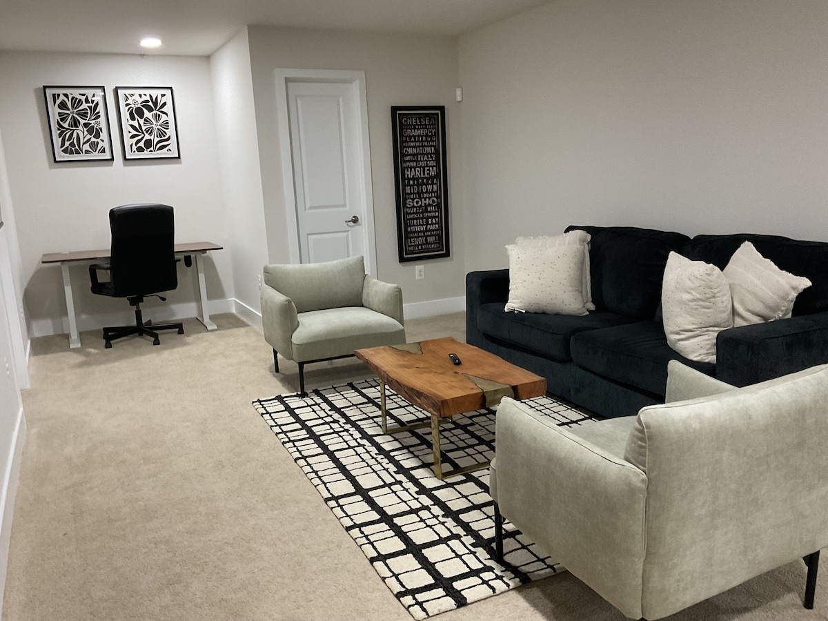 Novo apartamento cave independente de 2 quartos com uma entrada privada equipada com uma cozinha moderna, máquina de lavar e secar roupa e espaço de estar elegante. Nova comunidade de desenvolvimento com amplo estacionamento, vários belos trilhos para caminhadas e parques. Dez minutos de carro para muitas opções de compras e entretenimento. A menos de 30 minutos da National Harbor e da Base Aérea de Andrews. Opções de autocarro nas proximidades e vários hospitais e instalações médicas.