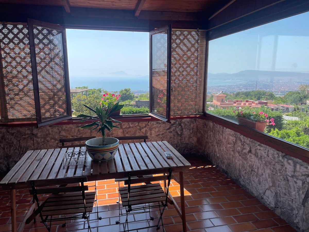 Lindo apartamento na cidade de Nápoles, na área de Petraio (escadas antigas), localizado em um local tranquilo no último andar, sem elevador, com um magnífico terraço com vista para o mar no Golfo de Nápoles (do vulcão Vesúvio, à ilha de Capri, à colina de Posillipo). Ampla e luminosa sala de estar com sofás e cozinha em majólica, mesas de jantar internas e mesa externa na terraço com vista para o golfo. Dormitório no andar superior com quarto duplo panorâmico, banheiro e área de estudo/relaxamento.