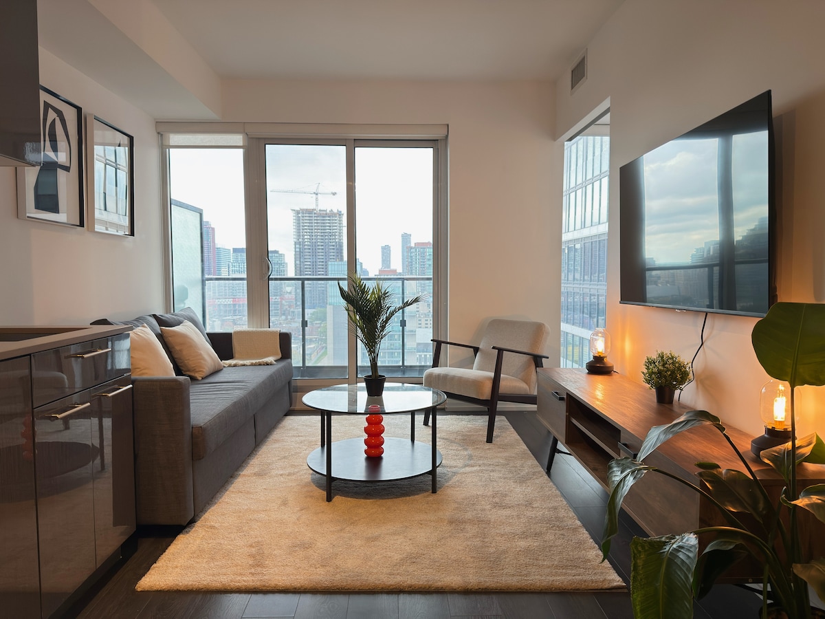 Este apartamento moderno no bairro de King West, em Toronto, oferece uma escapadela privada e tranquila no coração da cidade. Caminhe até ao Entertainment District, ao Rogers Centre e às lojas e restaurantes da moda na Queen Street. Profissionalmente decorado e limpo entre cada estadia, desfrutará de um retiro fresco e elegante sem espaços partilhados. Perfeito para quem procura conforto e conveniência no centro de Toronto.