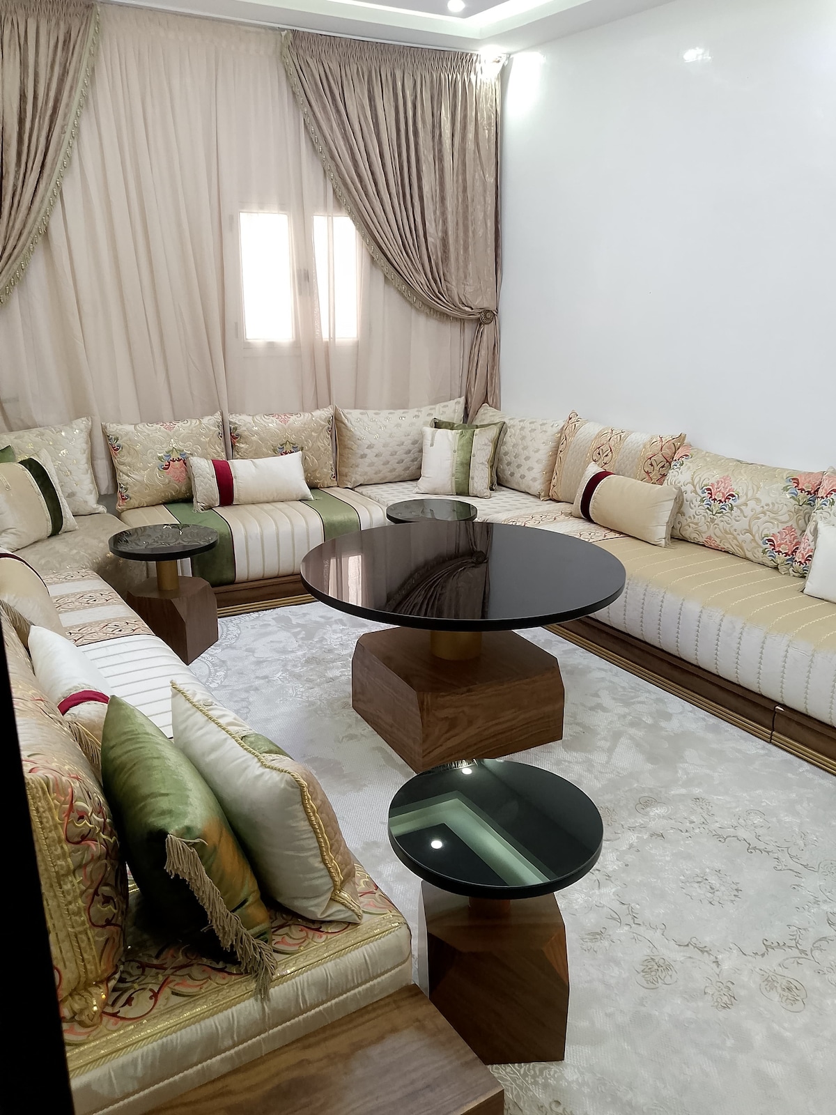 T3 mobilado de 120 m2,localizado na zona verde segura das Embaixadas e agências das Nações Unidas. Na rua Sidi Mohamed Abbass, paralela à grande avenida que atravessa a cidade até ao mar. Também perto de restaurantes, incluindo o famoso pela sua qualidade "La Palmeraie", farmácias... À sua disposição para pequenas compras, um serviço permanente na receção do edifício.