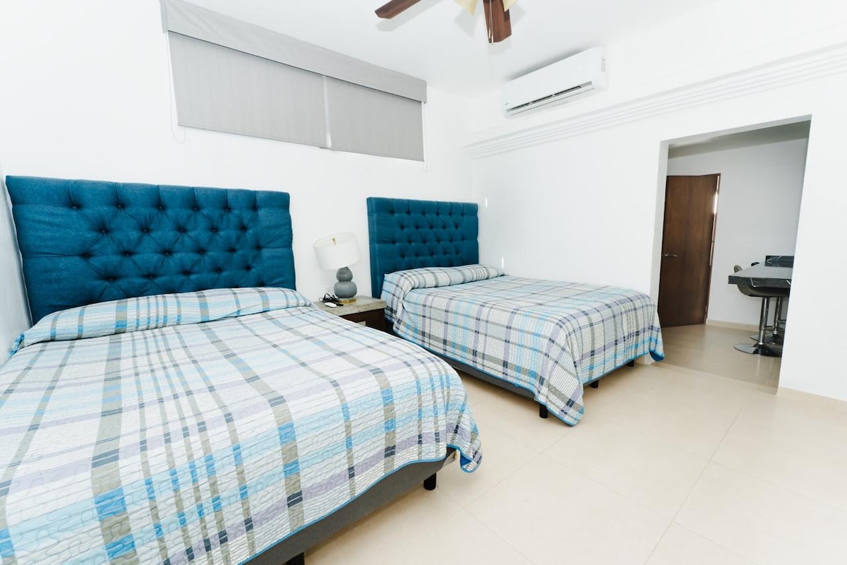 Apartamento acolhedor com excelente localização em Fracc. Brisas del Mar, a poucos metros do Aquário, do Central Park, do Estádio de Basebol e do Malecon. Fica a 10 minutos do novo centro histórico (à esquerda) e a 10 minutos da Zona Dourada e da gruta e do restaurante (direita). O apartamento tem as comodidades necessárias para uma estadia agradável.