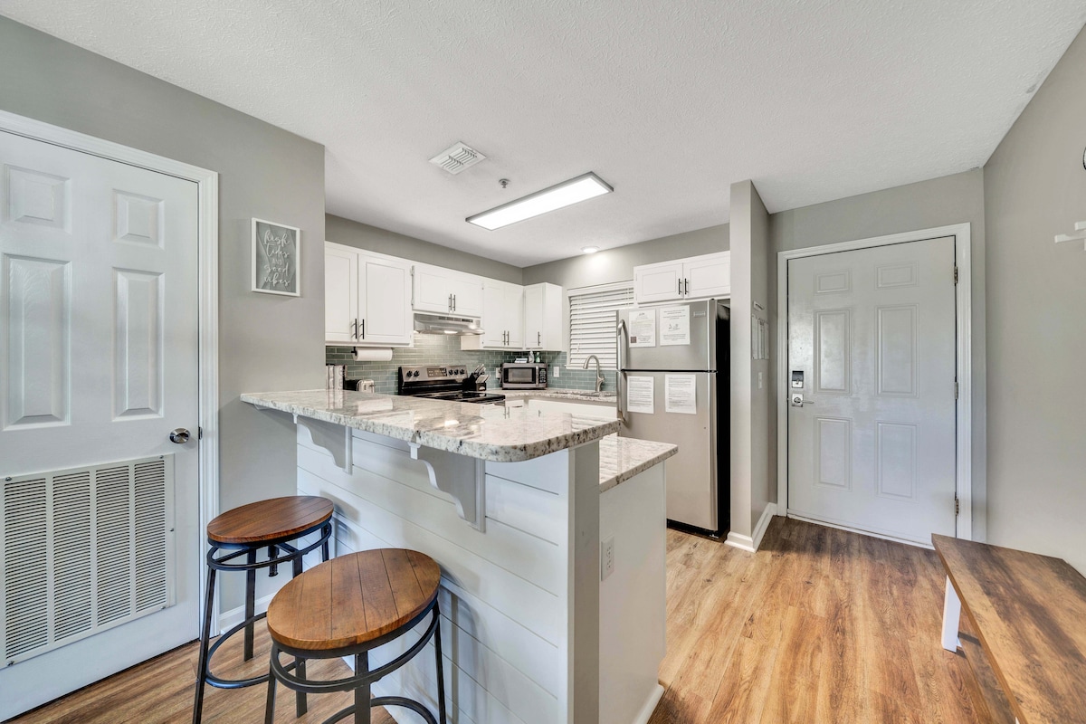 Condomínio espaçoso e atualizado com um quarto com casa de banho privativa, área de beliche no corredor com outra casa de banho completa. Dormem 6 pessoas com sofá-cama. Localizado no Grand Panama Beach Resort em Panama City Beach, Flórida. O resort inclui comodidades fabulosas, a poucos passos da bela praia, incluindo 2 piscinas aquecidas e banheiras de hidromassagem, bares tiki, centro de fitness e uma loja geral no local que vende de tudo, desde artigos diversos a lembranças, cerveja e vinho. Relaxe, relaxe e aproveite!