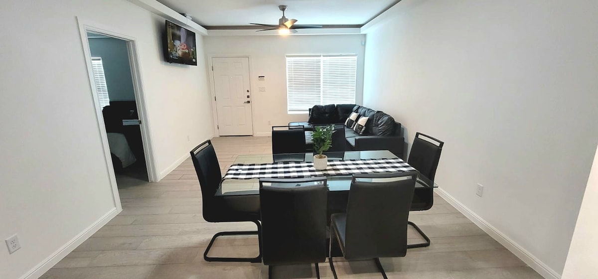Doble S Apartments na UTRGV, Apt #6. Ótima localização no coração de Edinburg - 0,5 milhas da UTRGV, 4 milhas para DHR, 1,5 milhas para o Tribunal do Condado de Hidalgo. Você vai se sentir em casa e relaxado em nosso espaço recém-remodelado com 2 camas queen size aconchegantes, TVs inteligentes, sala de estar e jantar confortáveis e uma cozinha completa com todos os itens básicos! Wi-Fi gratuito, estacionamento e acesso à área de lavanderia para nossos hóspedes. Câmeras de segurança estão gravando o perímetro do edifício, estacionamento e área de lavanderia 24 horas por dia, 7 dias por semana.