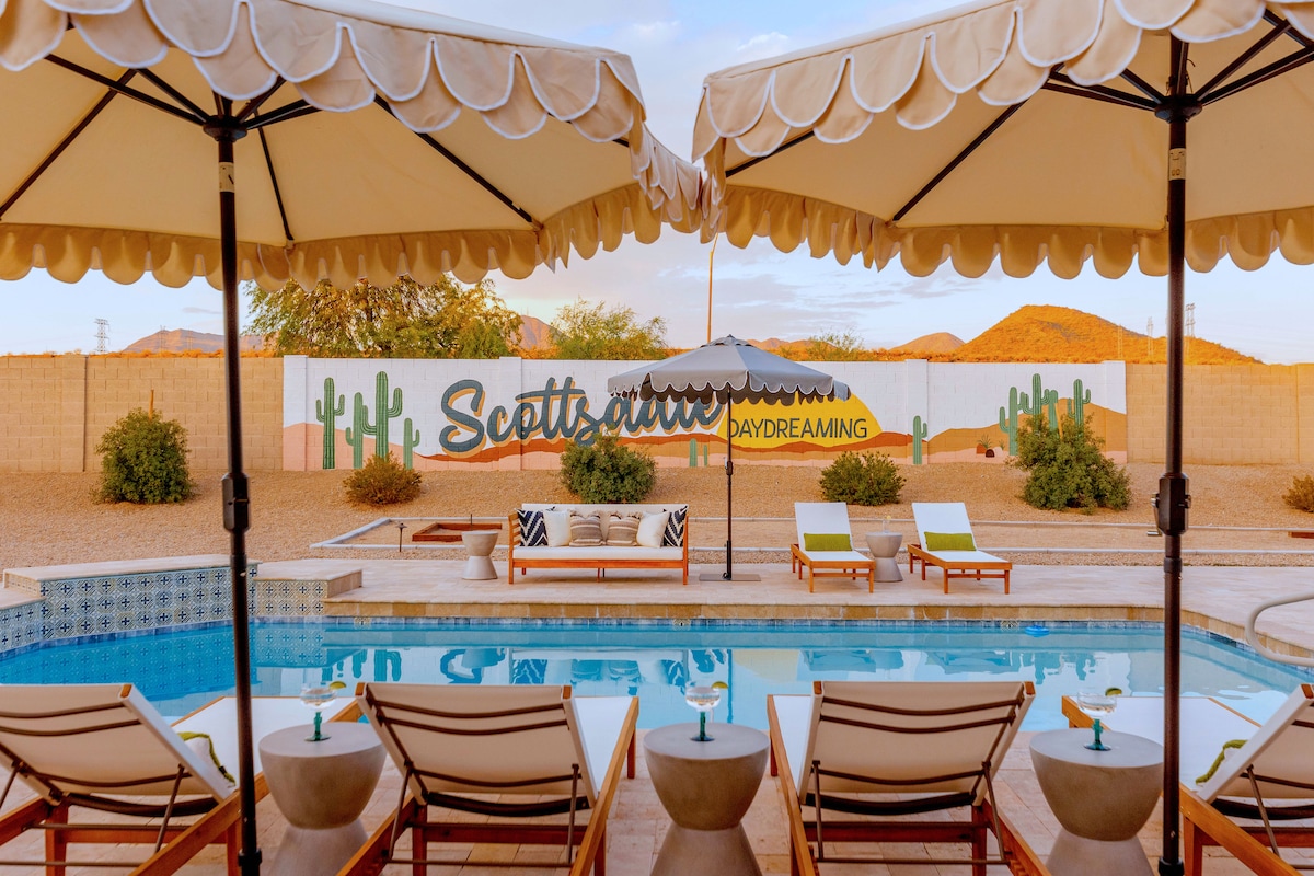 Damos-lhe as boas-vindas à The Hidden Hacienda Scottsdale! Um refúgio divertido e caprichoso com decoração cowboy-chique, piscina, spa, karaoke e jogos - perfeito para despedidas de solteira, famílias ou escapadelas de golfe. Tem capacidade para 10 pessoas com camas confortáveis, TVs inteligentes, uma mesa de bilhar e uma cozinha totalmente abastecida. Relaxe sob as palmeiras, pratique o seu swing no minigolfe ou descontraia no seu oásis privado no quintal com uma fogueira aconchegante e televisão ao ar livre. A minutos de Kierland Commons, dos melhores campos de golfe, do Spring Training e muito mais!
