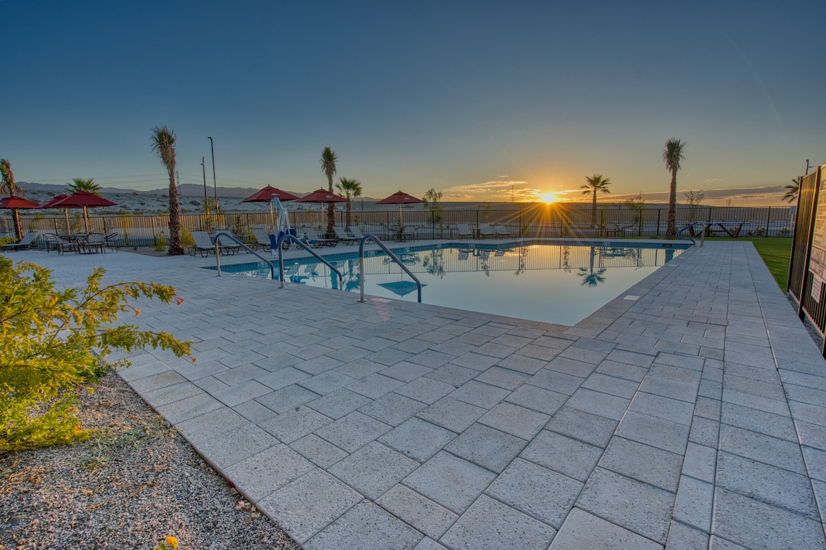 Our Legacy Palms king bed studio suite is a newly renovated, spacious & bright space with a modern California-desert vibe. French doors open to a private balcony overlooking the lush villa grounds & water fountains. The suite features a smart TV with premium cable, mini-fridge, microwave & Keurig coffee maker along with a en-suite bathroom that has a soaking tub & separate shower. The community grounds feature 12 heated pools and spas, a gym, hammocks, grills & much more!
