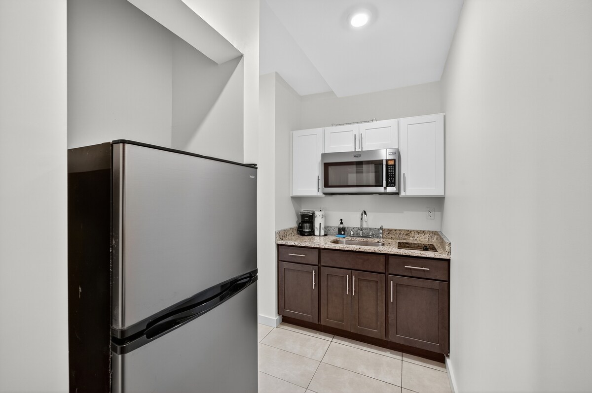 Relaxe e aproveite o nosso estúdio Luxe Penthouse com elevador e estacionamento! Lindamente mobiliado na Main St. em Warwick - Caminhe até tudo! Janelas panorâmicas com vistas incríveis sobre Warwick. Chuveiro a vapor com alto-falantes bluetooth, produtos de higiene pessoal de luxo, cama king size Heavenly com lençóis de algodão egípcio, 65 pol. Smart TV HD, assentos de couro reclináveis, espreguiçadeiras de veludo convertem-se em dormentes, cozinha de designer totalmente abastecida com todos os eletrodomésticos, Nespresso & Keurig, café, chá, água engarrafada incluída.