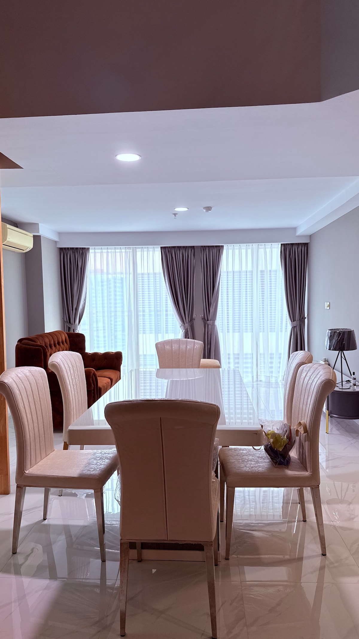 Apartamento recém-reformado Podomoro City Deli Medan Oferecendo uma estadia luxuosa com design aconchegante e caseiro. Você encontrará uma bela vista cativante da cidade diretamente da conveniência de sua janela e varanda. Localizado no centro da cidade de Medan. • Acesso direto ao Shopping Podomoro diretamente do saguão do apartamento • Oposto ao JW Marriot Hotel • Sun & CP 8 minutos • Vista da cidade muito bonita • Luxo totalmente mobiliado • 2 unidades de Smart TV grande (com Netflix, youtube, etc) • Wi-Fi de alta velocidade • Purificador de ar