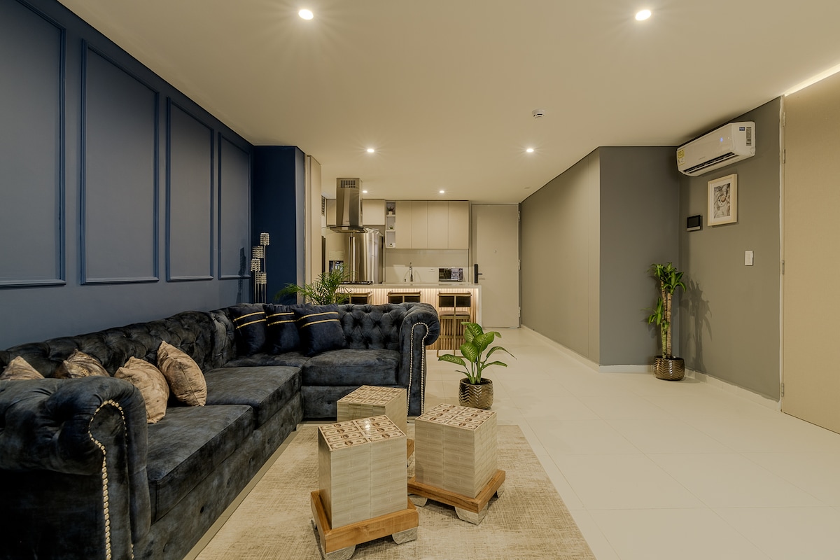 - Book this stylish 16th floor, two bedroom apartment with private jacuzzi in El Poblado and have access to: - Free on-site parking - Private hot-tub - Dedicated work-space with high speed WiFi - Netflix - A/C only in master bedroom - Two HD smart TVs - Steam room - Swimming pool - Jacuzzi - Fully equipped gym - Restaurant and cafeteria - Free on-site washer/dryer - Free tea/coffee station - Spa - Offices - Conference room - Easy access to parque Lleras and JMC airport