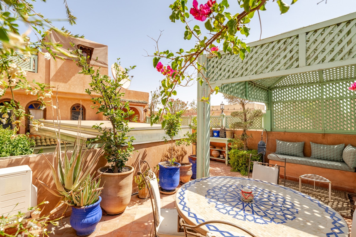 Riad deslumbrante com piscina no terraço