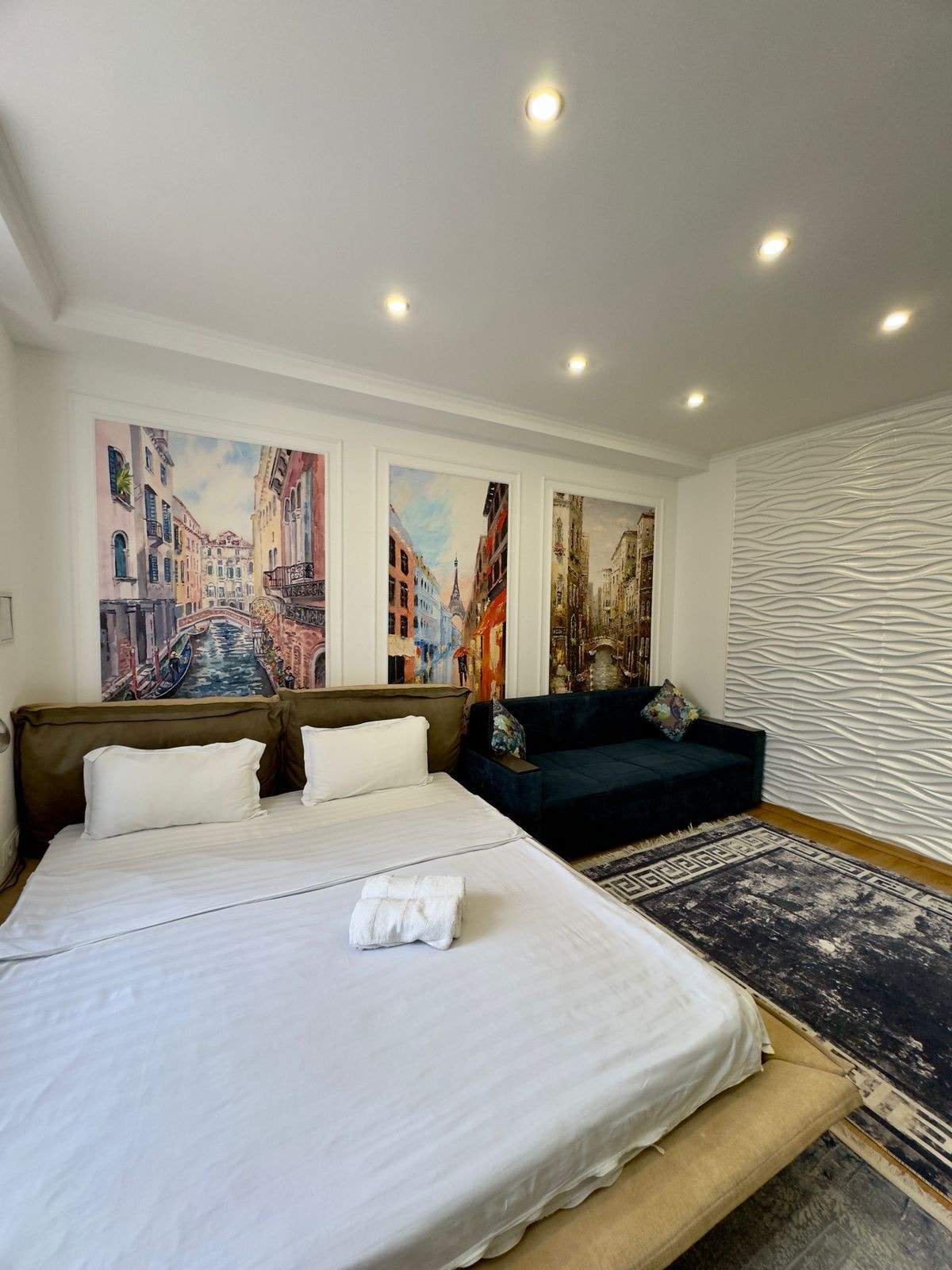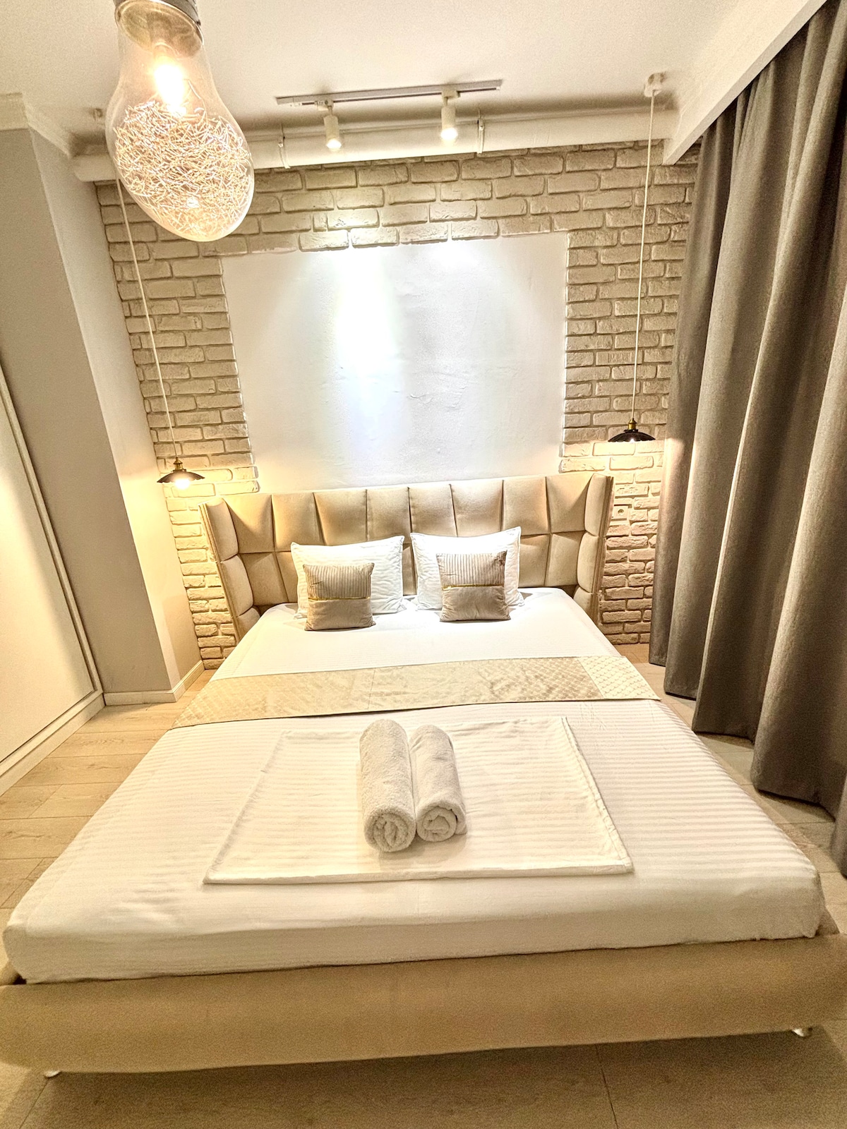 Apartamento de luxo com seu próprio estilo único. Muito espaçoso. Dentro, tudo é pensado nos mínimos detalhes. Localização conveniente. Nas proximidades há uma bela padaria, cafés com pães frescos, vários restaurantes, lavanderia, estúdio de beleza, mercearia 24/7, cafés, farmácia. Há estacionamento e parque. A cozinha e o quarto são isolados. Quente, limpo e muito aconchegante. Para verdadeiros apreciadores da ordem. Há um guarda-roupa espaçoso. Internet rápida, smart tv. E a vista da janela agradará seus olhos com grandeza e beleza.
