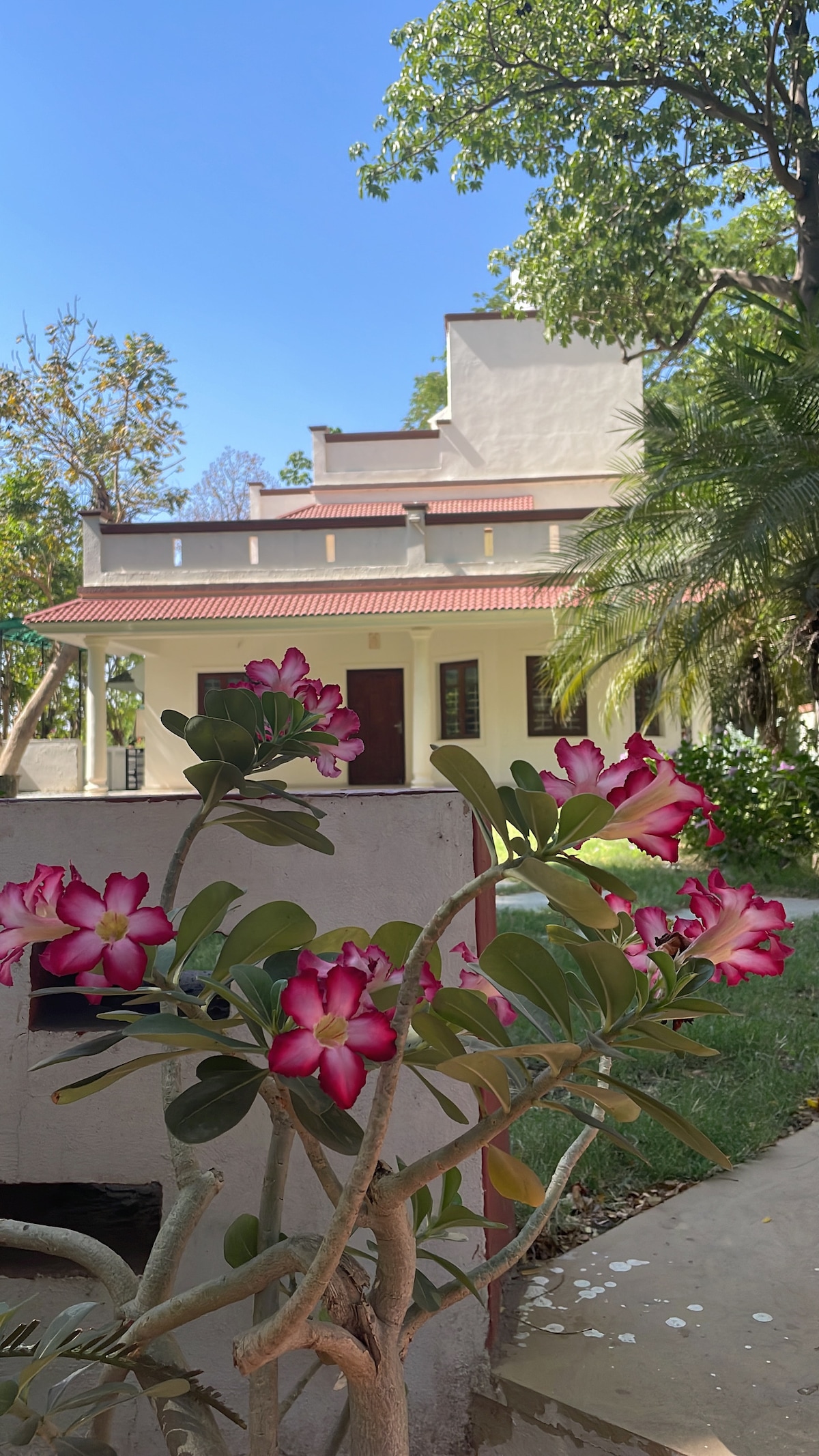 Não se esquecerá do seu tempo neste lugar romântico e memorável. A sua busca por paz,privacidade, ambiente limpo e perto da natureza termina em Amrut baug. Temos 3 quartos totalmente mobilados com casa de banho anexa, varanda, enorme terraço aberto, 2 pátio, uma cozinha aberta no quintal, smart tv, Wi-Fi, sistema de música, sala de estar com sofás e lounge e uma enorme mesa de jantar e assentos ao ar livre também. Temos mesa Tt, placa de carrom, bola de bastão de críquete. Segurança de 24 horas e housekeeping.villa é totalmente climatizada.