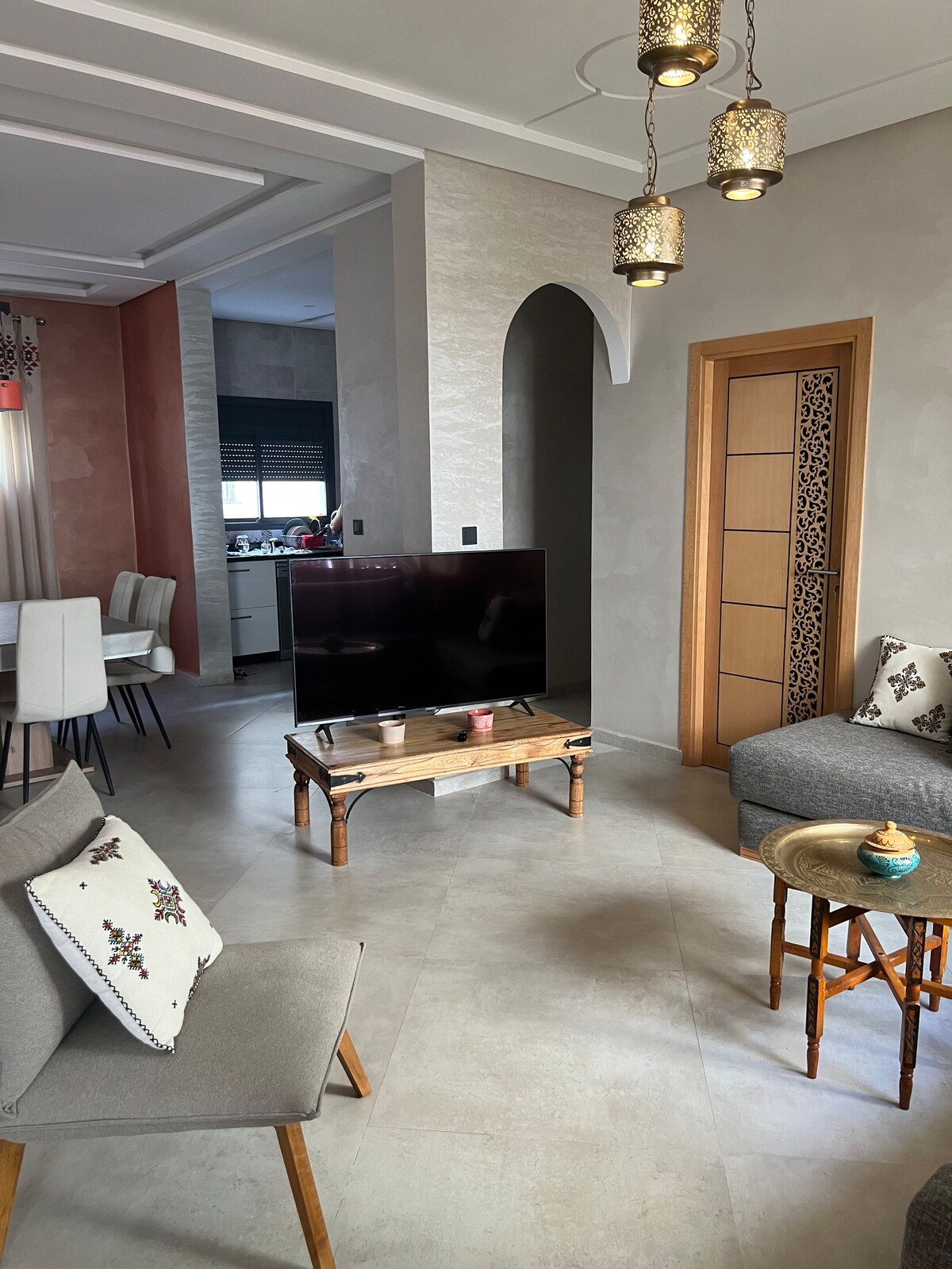 Alojamento elegante, perfeito para famílias ou grupos de amigos que querem descobrir a cidade de Fez. Localizado no centro da cidade, perto de todas as lojas (estação ferroviária, mercearia, consulado francês, centro da cidade,etc.). Apartamento individual, localizado no primeiro andar de uma casa com entrada independente e segura. Completamente remodelado e contém todas as comodidades necessárias para uma estadia agradável. 2 quartos 1 cama de casal, 2 camas individuais + dormir na sala de estar (sofás)