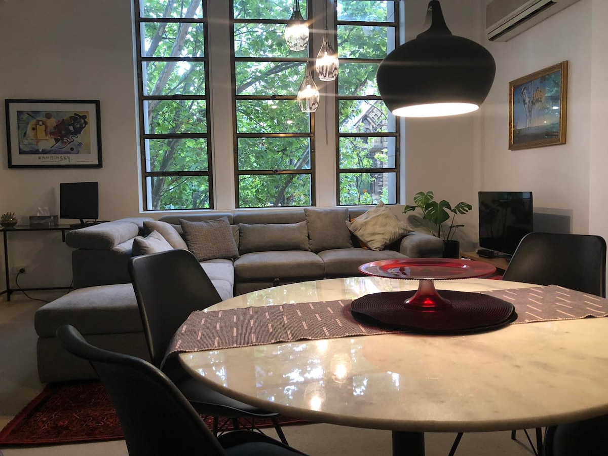 ÚNICO E SOFISTICADO Apartamento independente. O apartamento foi convertido de um armazém e fica no térreo. O espaço é moderno, espaçoso, leve e confortável. Acesso privado a partir de uma pista de pedra azul bem iluminada, no coração de Fitzroy, há 2 quartos de bom tamanho (e um sofá-cama queen size, mediante solicitação) Roupa de cama e toalhas de qualidade, com necessidades básicas fornecidas (orgânicas/ sustentáveis/ locais sempre que possível). Máquina de lavar louça, forno, cooktop e exaustor Borch novos em folha.
