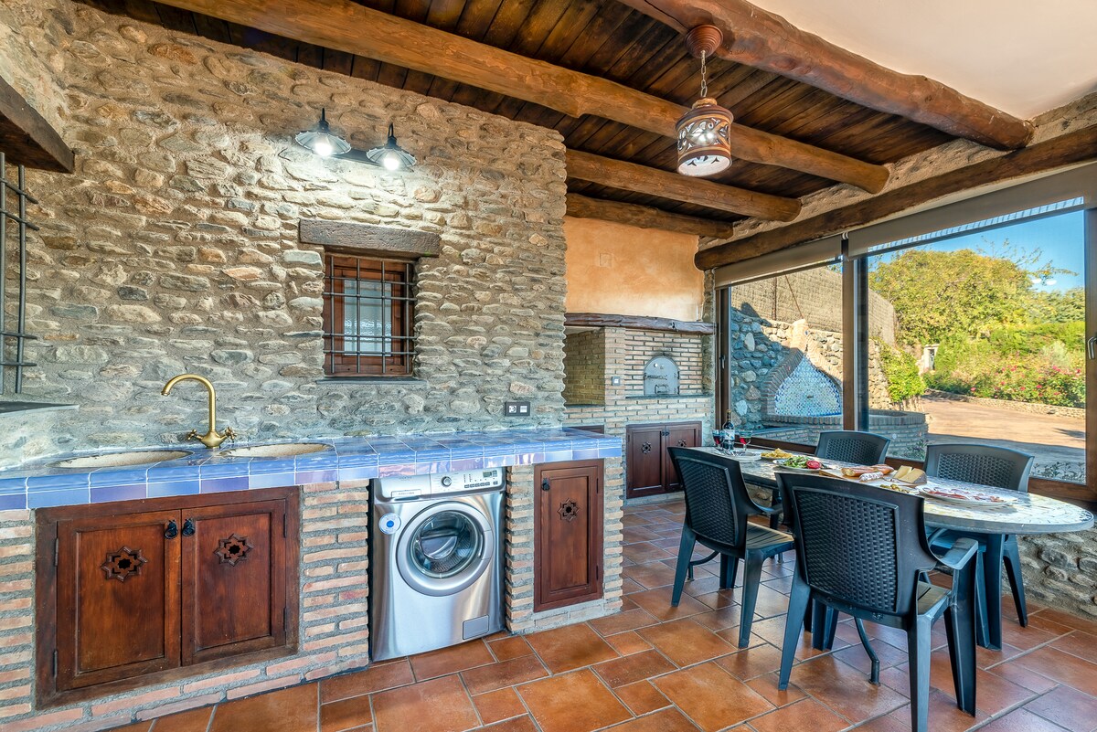 Moradia fantástica com vista para a montanha com piscina privada. Se adora a natureza, este é o lugar certo para ficar! Apenas a 19 km da estância de esqui Sierra Nevada e a 18 km de Alhambra, em Granada. Experimente uma paisagem mágica e respire o ar da montanha nesta nova moradia em Guejar Sierra! Grande jardim fechado com muitas árvores frutíferas e belas vistas para Sierra Nevada. A casa é nova e moderna e construída em 2024. (Totalmente isolada) Piscina privada (não aquecida e fechada de 1 de novembro a 1 de maio)