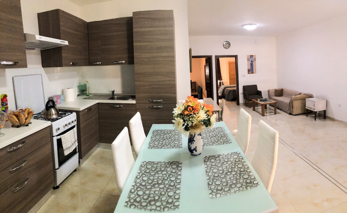 Estrategicamente localizado entre as duas enseadas da baía de Marsaskala, o apartamento fica a apenas 5 minutos a pé do passeio marítimo, restaurantes, lojas e estação rodoviária e a 10 minutos a pé das áreas de natação e praias em St Thomas Bay. O apartamento tem 2 quartos, 2 casas de banho, uma cozinha combinada e área de estar, terraço ensolarado, A/C, Wi-Fi, TV Netflix e lavandaria. Pequenos-almoços ligeiros também estão incluídos. Uma garagem do outro lado da rua também está disponível gratuitamente para estacionamento privado.