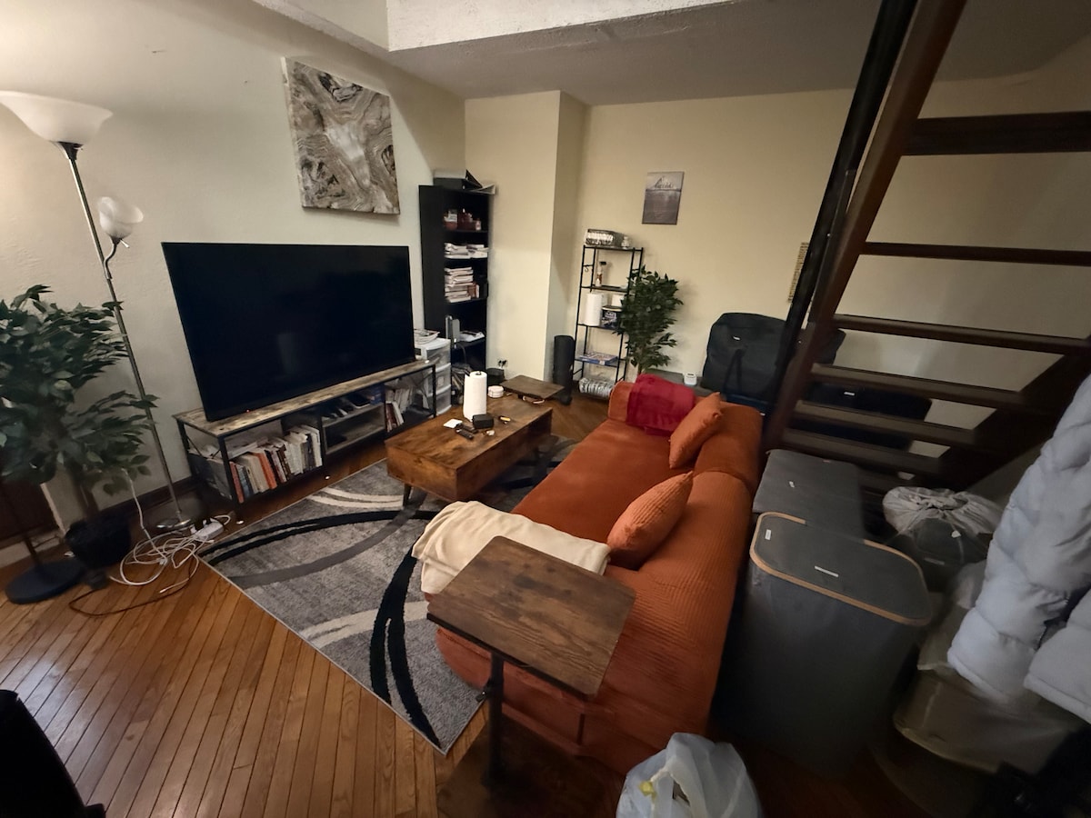 1-br loft! 2 TVs. 2 Space heaters. New sofa.