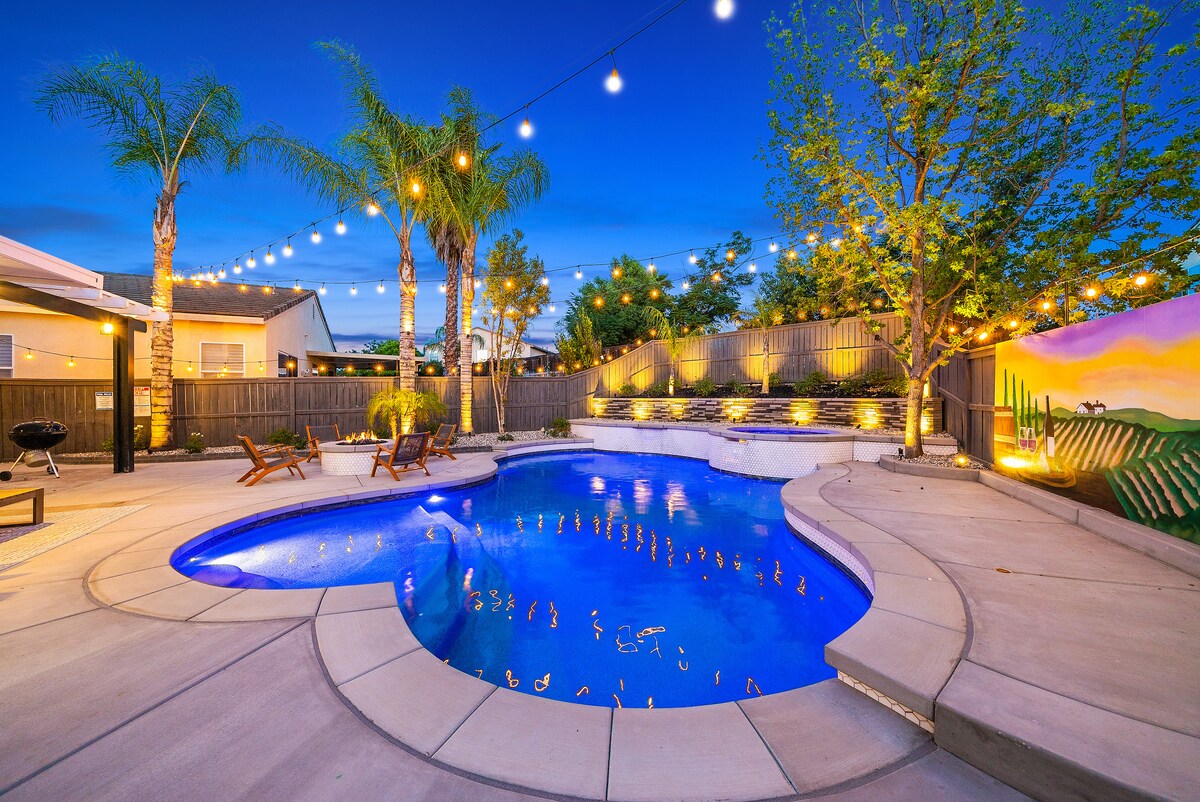 Bem-vindo ao nosso requintado retiro Airbnb em Temecula Wine Country. Com uma nova piscina, interior totalmente remodelado, todos os novos móveis modernos de meados do século, incluindo colchões de espuma de memória, churrasqueira exterior, mesa de bilhar e spa, convenientemente localizado a poucos minutos de vinícolas, desfrute de uma taça de vinho ou cozinhe uma refeição requintada no quintal. Relaxe, descontraia e crie memórias inesquecíveis em seu próprio pedaço de paraíso. Reserve sua estadia conosco hoje e embarque em uma extraordinária aventura no país do vinho.