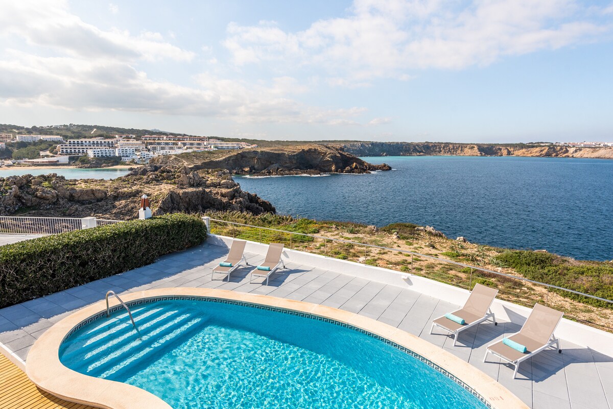 Chalé geminado com acesso independente, piscina privada e estacionamento no próprio terreno (essencial nos meses de alta temporada). Com três quartos, 3 banheiros, cozinha, sala de estar e uma espetacular área de terraço com piscina. A cozinha foi reformada em 2022 e conta com eletrodomésticos novos. Localizado em uma área muito tranquila, rodeado pela natureza, a 300 metros de uma das praias mais bem avaliadas de Menorca, de onde começa o "Camí de Cavalls".