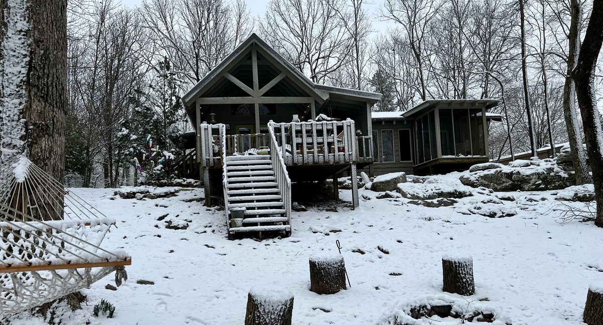 Relaxe e recarregue as energias no nosso refúgio mágico! Leia nossos comentários para ver o que os hóspedes têm a dizer! Casa 2/2, frente marrom, convenientemente localizada na Lookout Mountain Parkway perto das Cataratas, Parque e Mentone! Varandas viradas para o oeste oferecem belas vistas com pôr do sol espetacular! O Cottonwood incorpora o estilo aconchegante e rústico da montanha que você adora, sem sacrificar o conforto moderno de um lar.