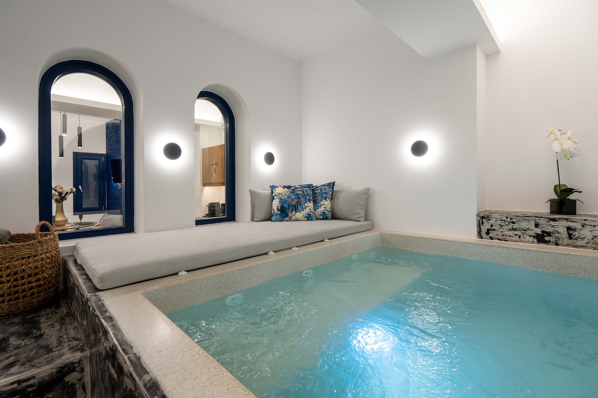 Localizado no coração de Oia, em uma posição isolada na famosa caldeira de Santorini, o Oia Spirit é um complexo elegante de 8 casas rupestres tradicionais independentes, com acesso a uma piscina rupestre compartilhada. Esta suíte também dispõe de uma piscina de mergulho privativa ao ar livre. A vista do terraço é deslumbrante, com a caldeira e as duas cúpulas azuis icônicas de Oia. O Aeroporto Internacional de Santorini fica a cerca de 17 km do Oia Spirit Boutique Residences e o Porto de Balsas a aproximadamente 23 km.