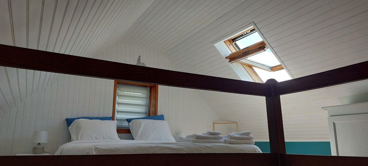 Adorável casa de pedra, a praia adjacente ao jardim (churrasqueira e espreguiçadeiras). No rés-do-chão, uma nova cozinha totalmente equipada. Máquina de lavar roupa, máquina de lavar louça, placa de cerâmica de vidro, frigorífico, congelador, forno. No andar de cima, um quarto muito grande com uma cama de casal de 190 cm por 140, um sofá-cama e uma televisão. Roupa de cama fornecida, toalhas não fornecidas. Opções de estadias de curta duração de 15 de setembro a 1 de maio. Julho e agosto: estadia mínima de 7 noites