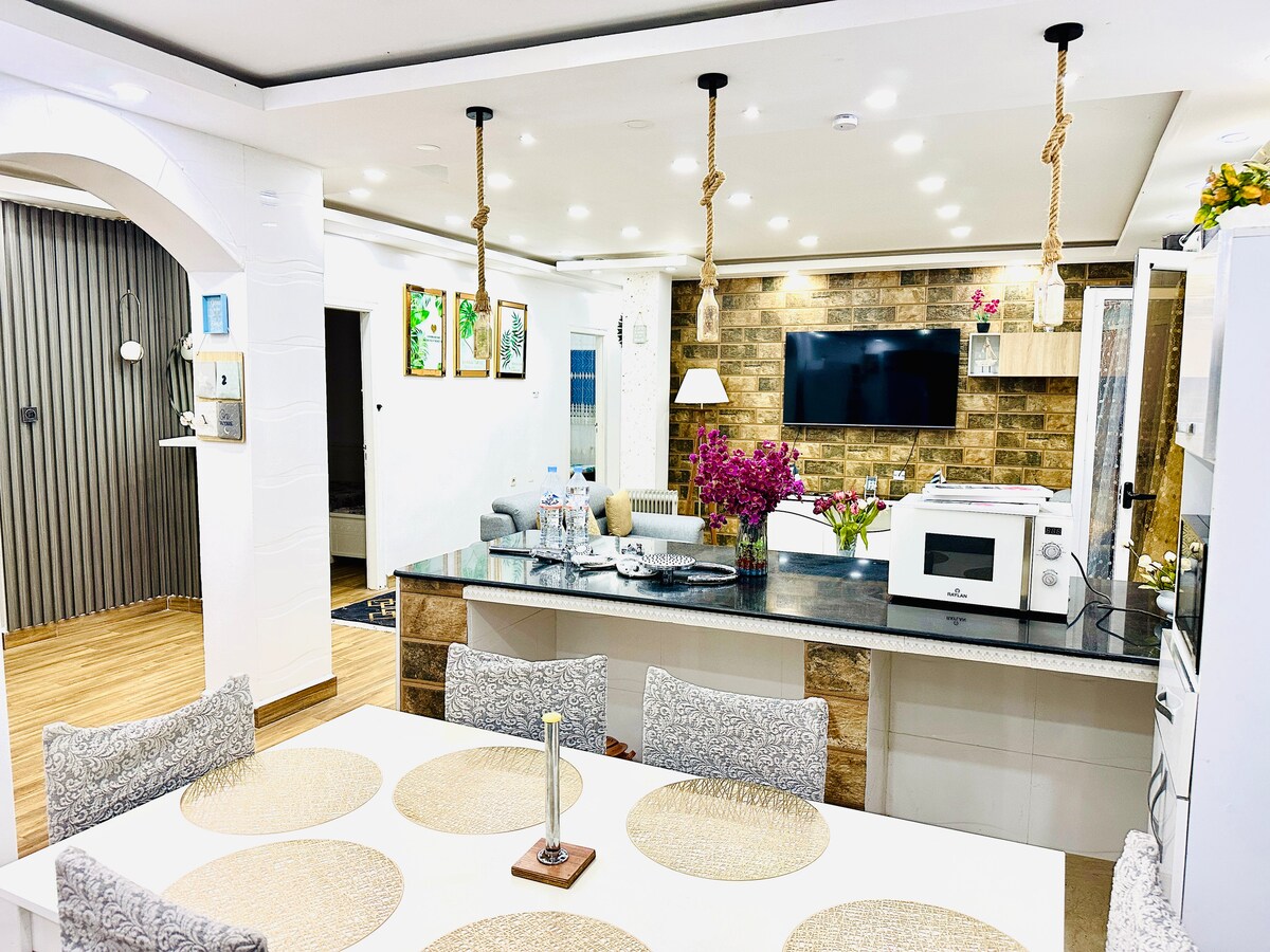 O Apartamento é novo e moderno, equipado com todas as comodidades ideais para todos passarem férias em cherchell, está localizado em sidi yahya em bastante bairro,o Apartamento é composto por 2 quartos e sala, um quarto tem cama king size,o outro quarto tem camas de casal com grande sala e belo terraço mobilado, casa de banho e estacionamento gratuito na garagem. Aviso: o acesso à residência é através de uma curta estrada não pavimentada ("pista"), incluindo uma pequena inclinação (ou descida).