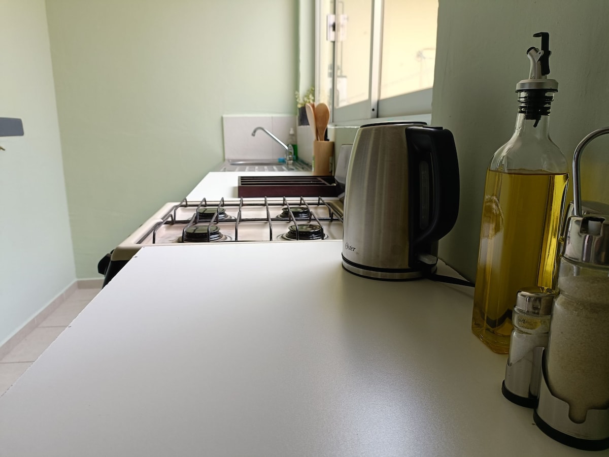 Apartamento acolhedor recentemente mobiliado, com todas as comodidades e a melhor localização em Metepec para passear e/ou trabalhar. - 2 camas de casal - 2 camas de solteiro - WIFI de 250 Mbps - Sala com televisão - Sala de jantar para 4 pessoas - Cozinha americana com: micro-ondas + fogão + cafeteira + liquidificador + frigobar - 24 horas de água quente A acomodação: O que faz a diferença é a limpeza e a comunicação. Todos os nossos hóspedes ficam totalmente satisfeitos.