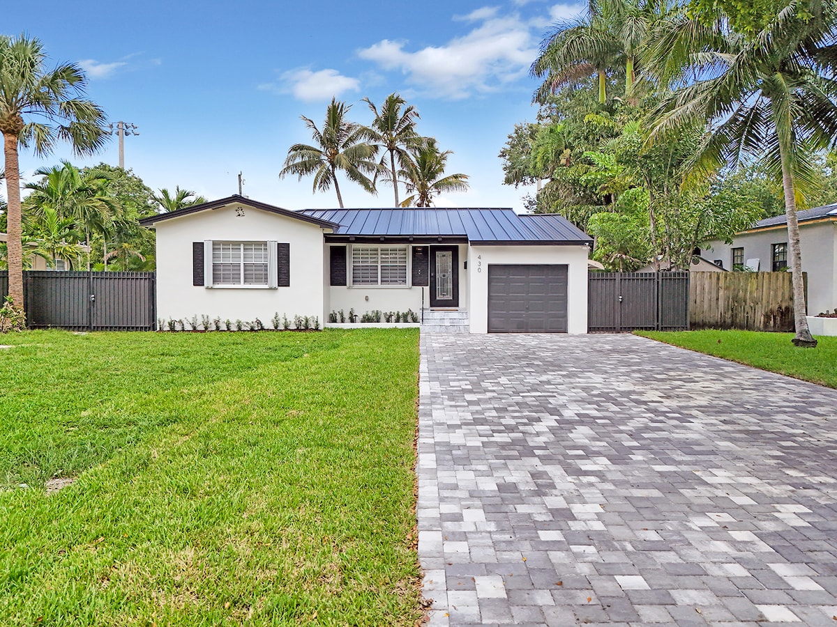Localizada no bairro de Hollywood Lakes, nossa casa fica a apenas 2 quarteirões do incrível calçadão de Hollywood Beach e a 3 minutos do centro da cidade. Há cursos de água incríveis ao redor do nosso bairro, perfeitos para caminhadas ao pôr do sol. Nossa casa é super limpa e atualizada. Desfrute de um grande cercado no quintal, piscina, mesa de pingue-pongue, churrasqueira, fogão a gás e uma cozinha totalmente equipada. Você também vai desfrutar de nossos incríveis móveis ao ar livre e uma TV inteligente de 75 polegadas que você pode transmitir seus programas favoritos. Perfeito para relaxar