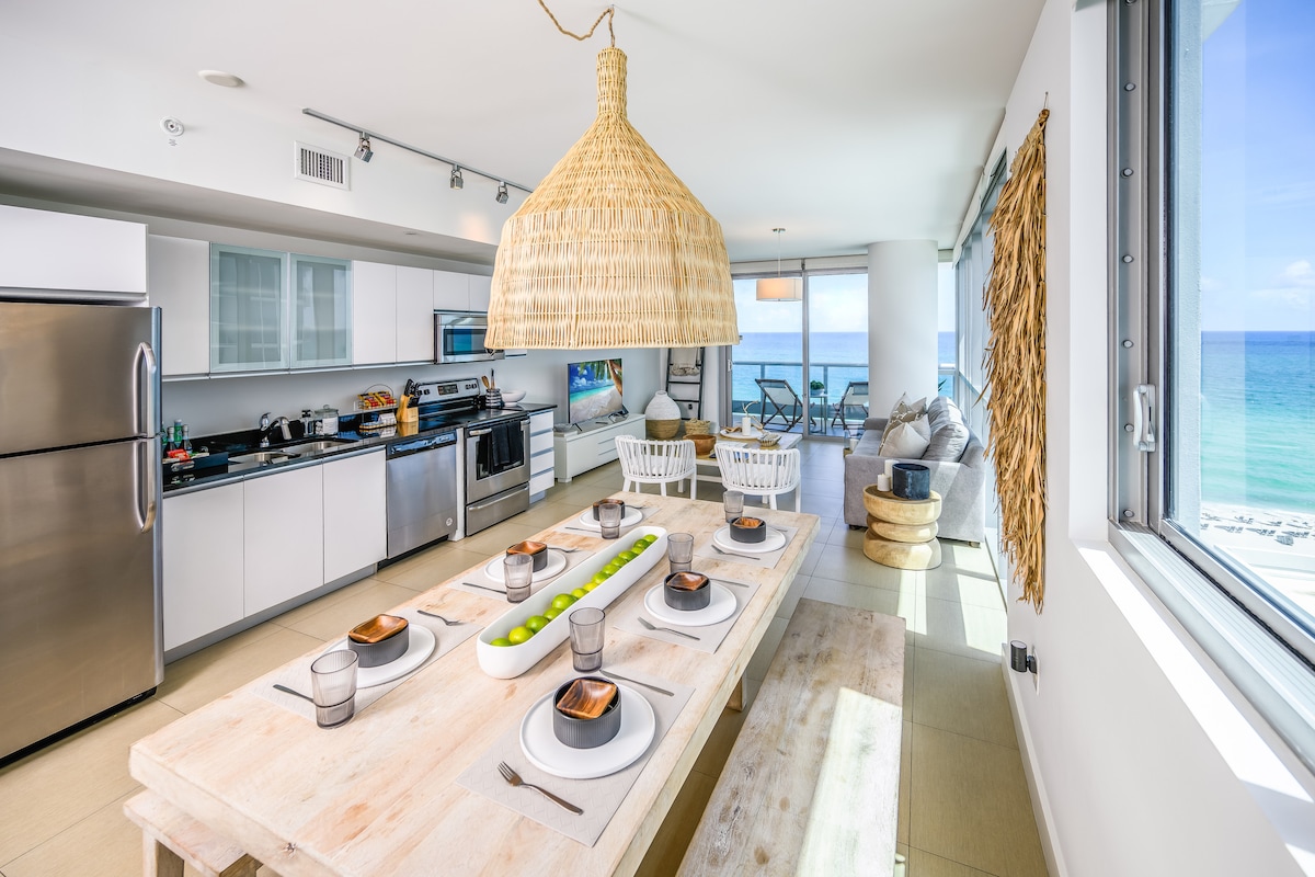 Apartamento espaçoso de 2 quartos em Miami Beach, cozinha e piscina