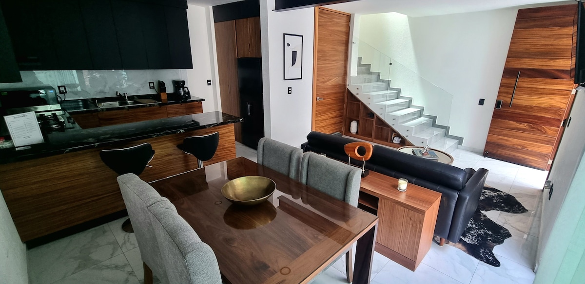 Acorde entre árvores e luz natural em Casita Woods, um retiro acolhedor e elegante no meio da floresta de Valle de Bravo. Perfeito para desligar, ler junto à lareira ou desfrutar de café no terraço rodeado de vegetação. A poucos minutos do lago e do centro da cidade, mas longe o suficiente para sentir paz total. Ideal para escapadelas românticas ou uma pausa criativa na natureza.