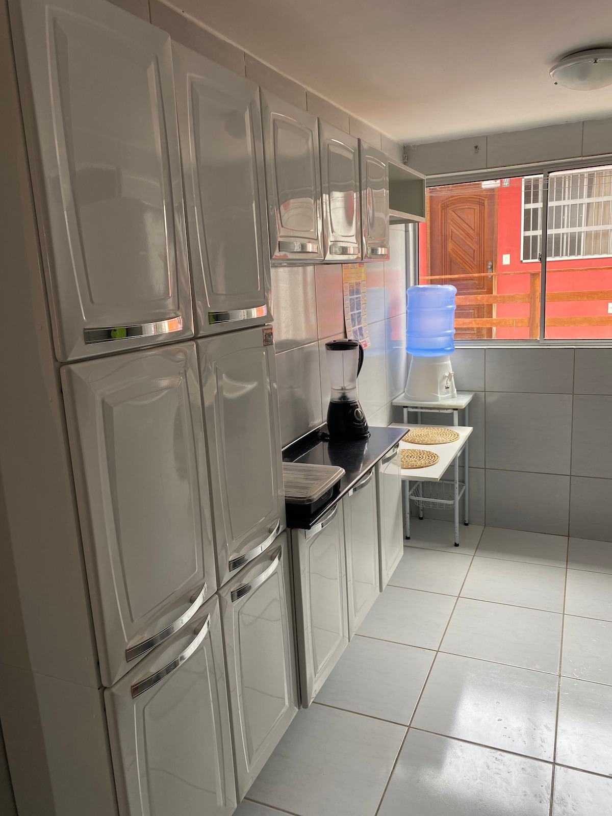 Espaço bem equipado com suíte. Possui ar condicionado, tv smart,frigobar,cama de casal e escrivaninha. Cozinha externa compartilhada, equipada com fogão, geladeira, mesa, cafeteira, sanduicheira, dentre outros. Tem churrasqueira com área aberta para lazer. A cozinha é bem equipada com o necessário para preparar suas refeições. O ambiente é tranquilo, familiar e muito bem localizado. Próximo ao aeroporto dos Guararapes, centro da cidade, cidade universitária, Boa Viagem, Olinda...