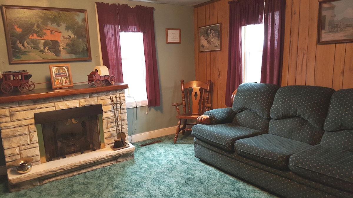 49 Water Street. Nossa casa de 160 anos está localizada no meio da região Amish e decorada com relíquias de dias passados. Você encontrará 2 quartos no andar de cima e um futon em 1 das 2 salas de estar no andar de baixo, acomoda 6 confortavelmente. Uma cozinha totalmente equipada, Wi-Fi privativo, toalhas, roupas de cama incluídas. Duas varandas para relaxar e assistir os buggies Amish passando. Nosso negócio Dayze Gone Bye Carriage Rides fica ao lado e está disponível para passeios panorâmicos, desfrutar de nossos animais ou sentar-se perto do riacho. Suco e café fornecidos.