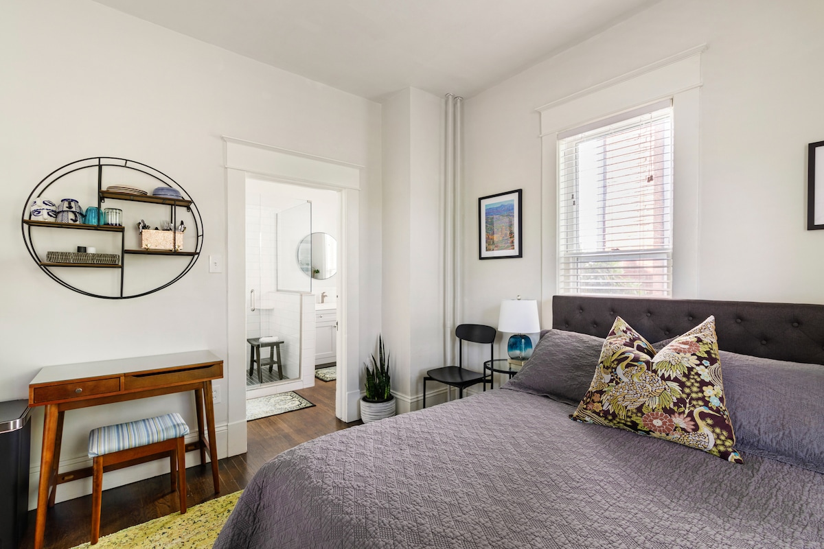 *AGORA COM ESTACIONAMENTO GRATUITO NO LOCAL* Bem-vindo ao nosso charmoso, histórico e recentemente renovado apartamento de um quarto no piso térreo aninhado no coração do centro de Roanoke, Virgínia. Esta propriedade requintada fica a poucos passos de uma infinidade de cervejarias e restaurantes locais, tornando-a um local ideal para amantes da gastronomia e entusiastas da cerveja artesanal. Está totalmente equipado para uma viagem de negócios rápida durante a noite ou uma estadia de longa duração. A unidade acomoda confortavelmente 4 pessoas com uma cama king size e um sofá-cama.