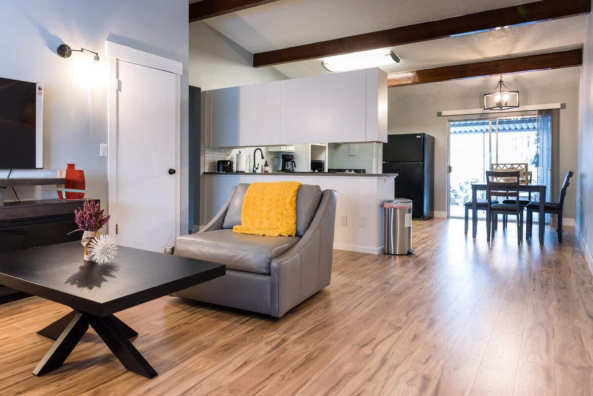 Novo estúdio com pátio e estacionamento gratuito para 4