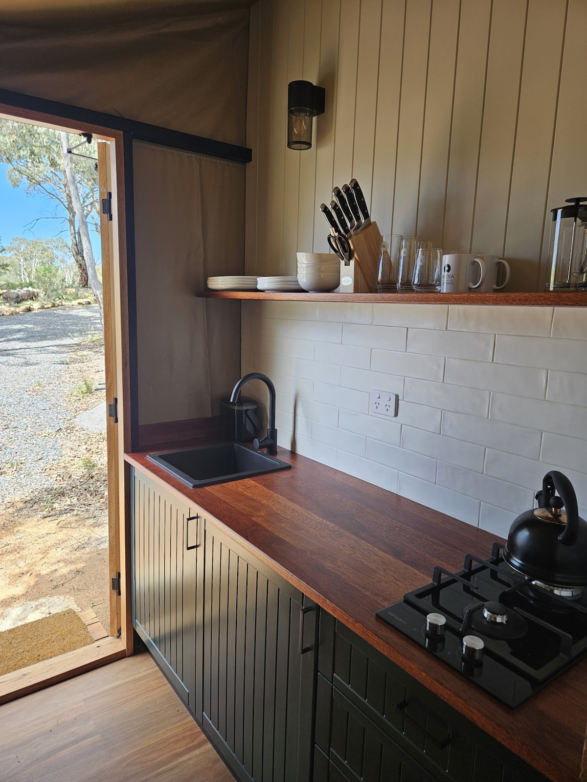 Edrom by Starlight is a cosy, romantic and private glamping tent (only one on site) exclusively for couples available from March to November. Situated only minutes from the centre of Mudgee in a spacious outdoor setting with a luxurious spa. If you are looking for a pampered rural weekend escape with sparkling wine and breakfast included where you can gaze at the stars and unwind then this is the place for you.