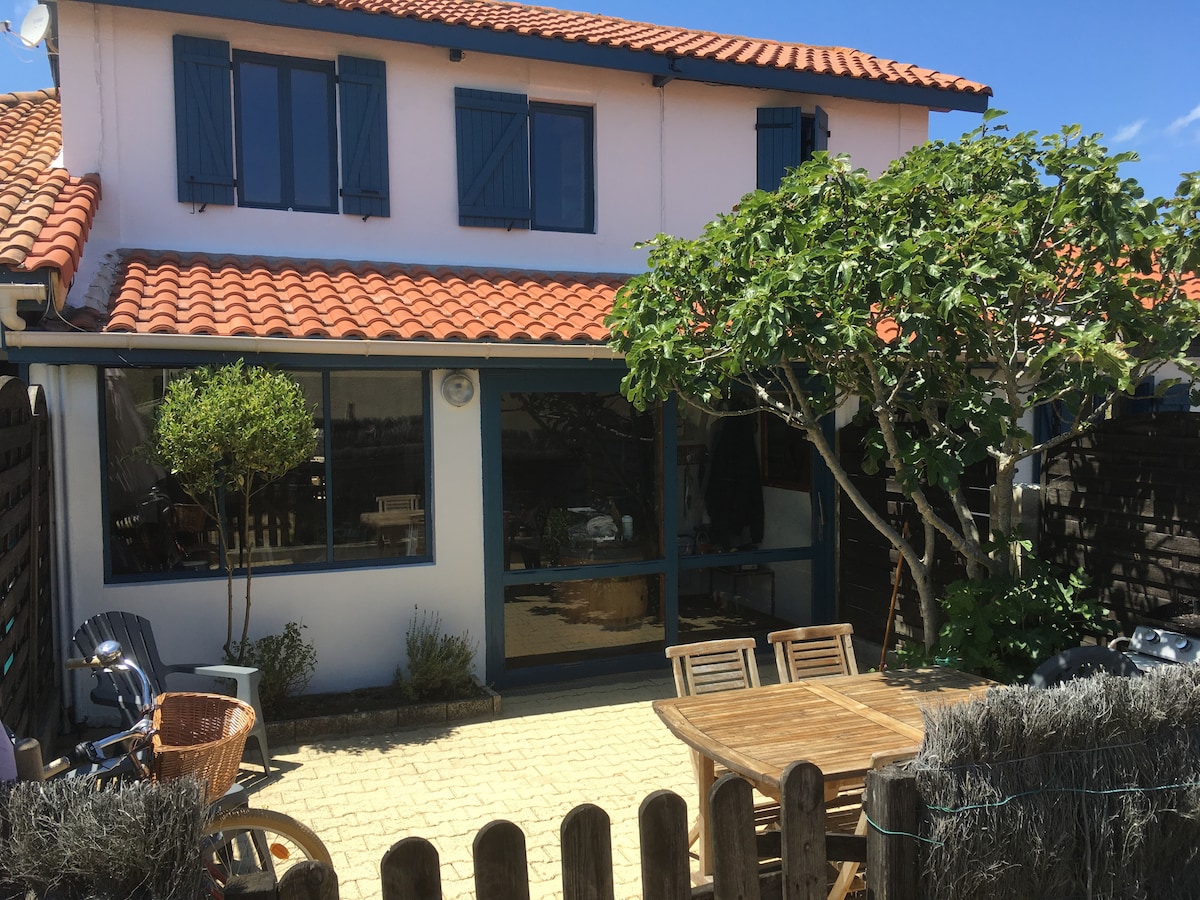 Localizado atrás da duna, este chalé dos anos 20, reformado, combina o charme do antigo com o conforto moderno para férias relaxantes. Atravesse a estrada e escolha a praia das asas à esquerda ou à direita, você está a 1 minuto das ondas, a 300 m das lojas. Aproveite uma área de estar de 100 m² com 3 quartos com ponto de água Do lado do jardim, o terraço coberto a leste tem vista para um jardim com os pés na areia e dispõe de banheiros e chuveiros externos.
