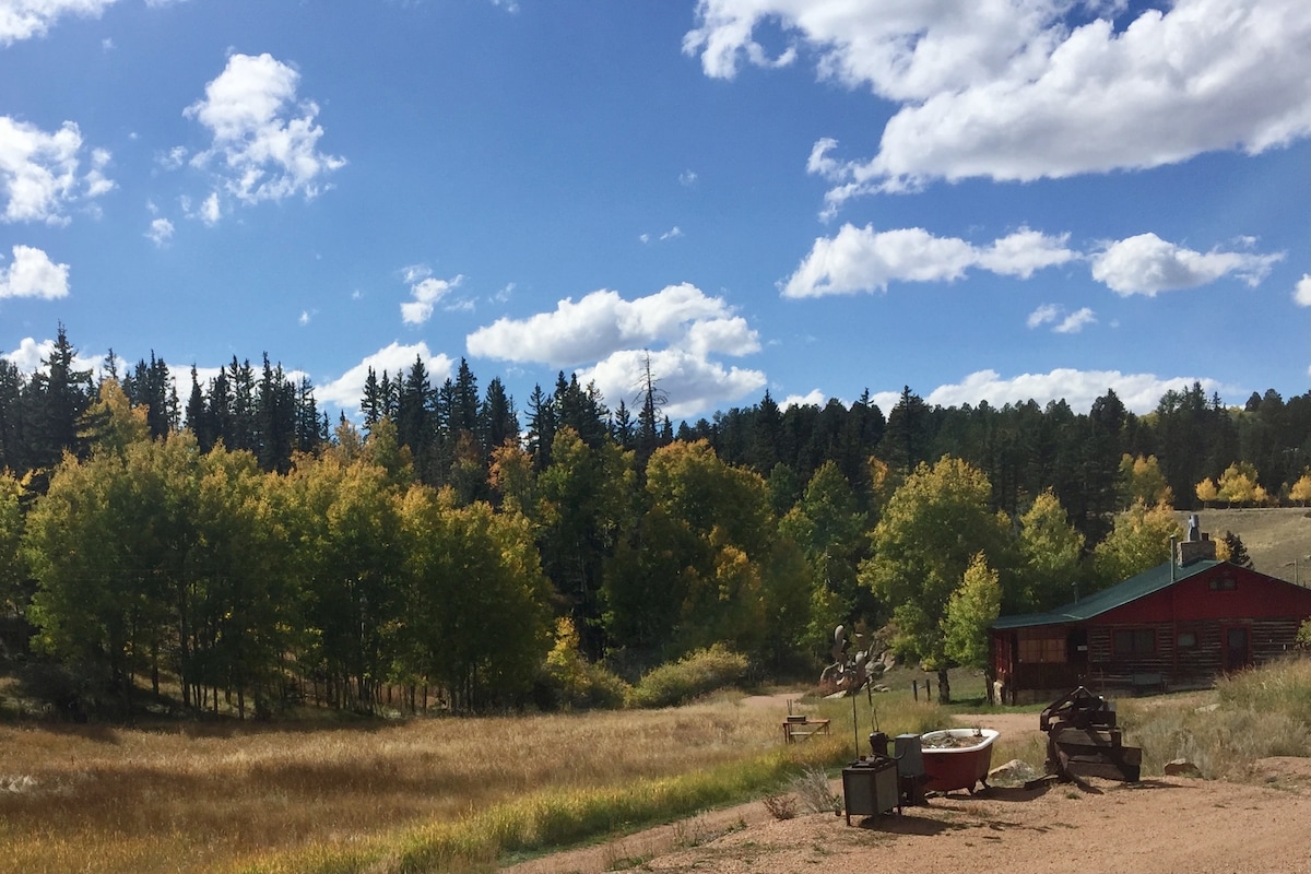 O AirBnB mais exclusivo que existe! Um hóspede veio com o filho e disse: "Esta foi a melhor experiência da minha paternidade." O Estes Park Outfitters Lodge, que aceita cães, é uma cabana de montanha fora da rede (máximo de 4 pessoas) em 20 acres na Floresta Nacional. Caminhe, ande de bicicleta de montanha, sapato de neve, esqui XC e traga cavalos para explorar quilômetros intermináveis de trilhas e vistas incríveis. Os hóspedes de inverno recebem uma queda de gato de neve gratuita; 4WD obrigatório no verão. Leia o anúncio e faça perguntas! Quilômetros da civilização. Os animais são os únicos vizinhos!